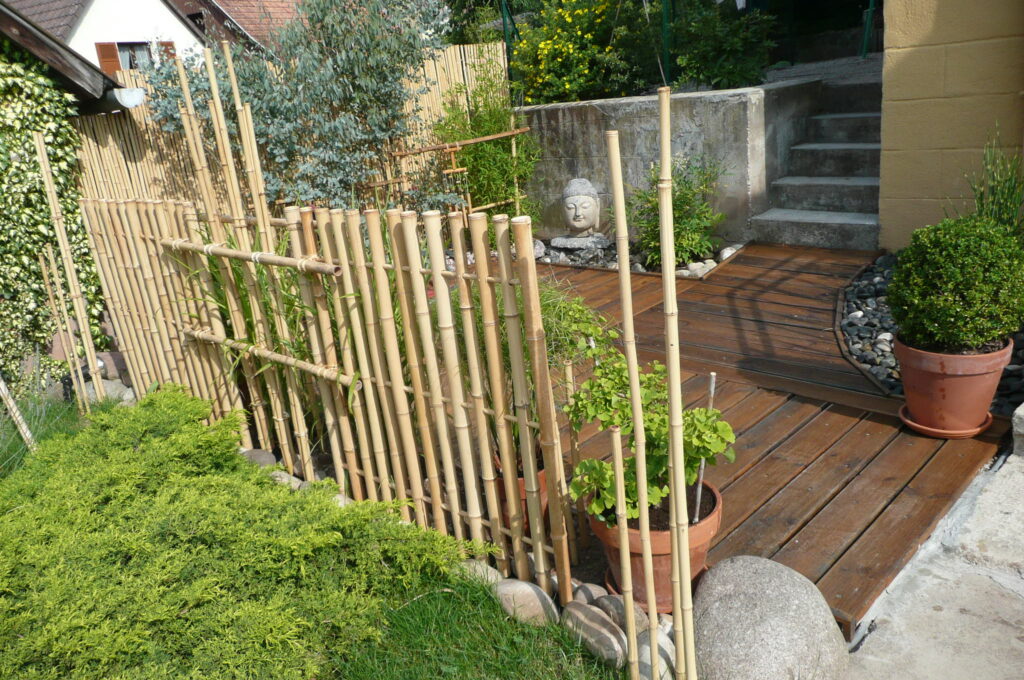 – Que diriez vous d’un miroir, d’une photo, entouré de tiges de bambous. A la façon d’un soleil. En encadrement horizontal ou vertical avec un peu de colle (Houla… Cela se complique ! non non)![]()