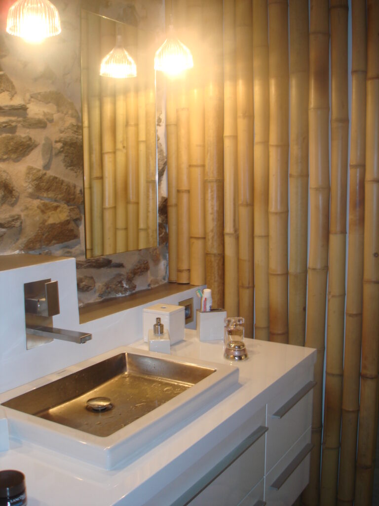 – Toujours avec de la ficelle, de la colle ou des clous, vous pouvez suspendre des tiges de bambous sur vos murs intérieurs.![]()